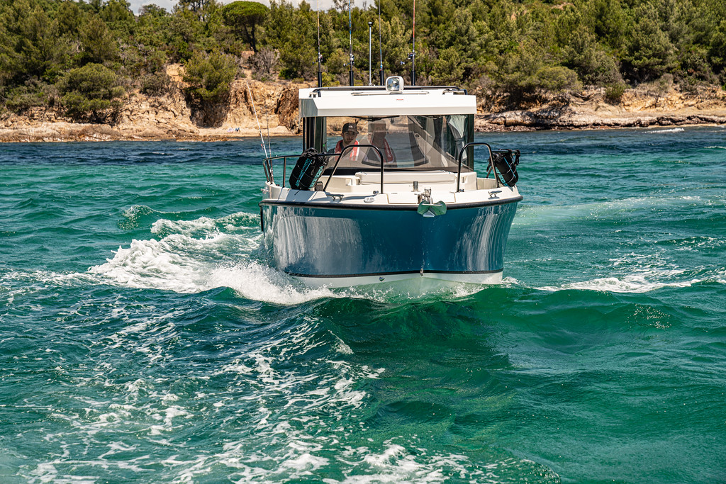 Le Quicksilver 805 Pilothouse est un bateau conçu spécialement pour les passionnés de pêche et d’aventure en mer. Offrant un confort optimal avec une cabine fermée et spacieuse, il permet des sorties prolongées, quelles que soient les conditions météorologiques. Sa configuration axée sur la pêche intègre de nombreux équipements comme des porte-cannes, une vivier à eau de mer, ainsi qu’un espace généreux pour le rangement du matériel. Sa motorisation puissante (jusqu’à 350 CV) assure des performances impressionnantes, tandis que son cockpit ouvert et sa timonerie bien équipée garantissent une navigation fluide et agréable. Avec des options de personnalisation variées, le Quicksilver 805 Pilothouse est un modèle pratique et robuste pour des aventures en toute sécurité.